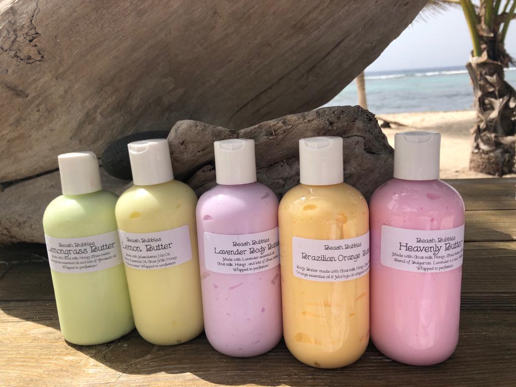 Beach Bubbles’ body butters are similar to its lotions but they are more moisturizing! They have additional oils and other lovely ingredients such as macadamia as well as goat’s milk, honey and shea butter. Yet these lotions do NOT leave your skin feeling or looking greasy. All natural ingredients (no parabens) and available in multiple fragrances and two sizes (8 oz and 4 oz bottles).